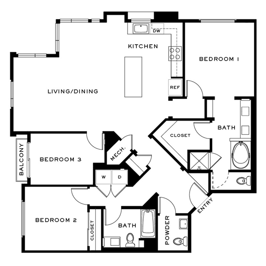 Discover the variety of floor plans available at The Flats and Flats West communities, where you can choose from studio, one, two, and three-bedroom apartments in Sunnyvale, CA. Each unit features soaring 12-foot ceilings, creating an open and airy atmosphere, and includes the convenience of an in-home, full-size washer and dryer. Find your perfect fit—schedule a tour today!